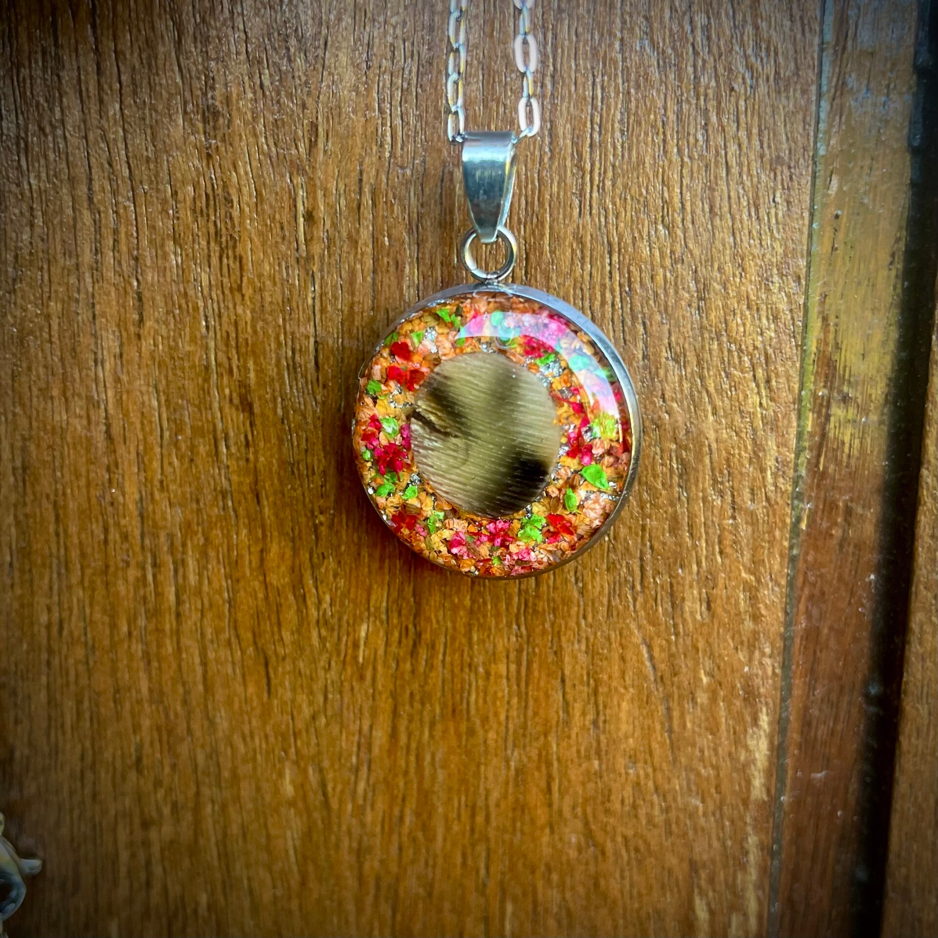 Pendentif corne et fleurs séchée, taille du cabochon de 18 mm environ